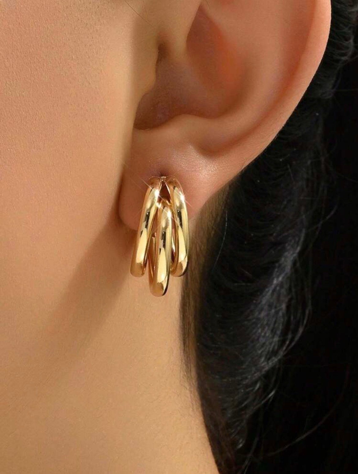 Pendientes de oro de conjunto de tres aros. Perfectos para looks casuales