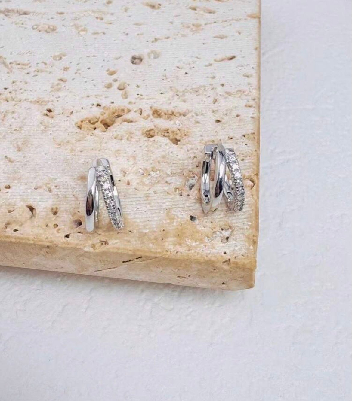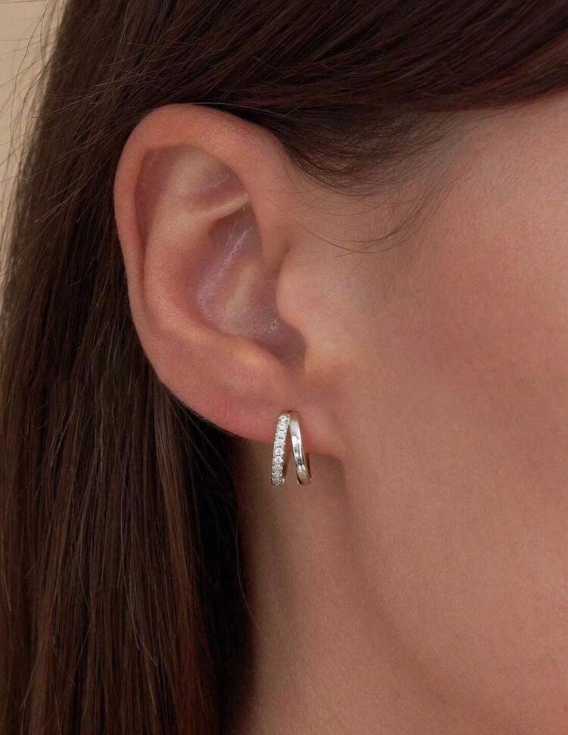 Pequeños aros de plata con swaroski que quedan ajustados a la oreja, son sutiles para llevar al día a día.