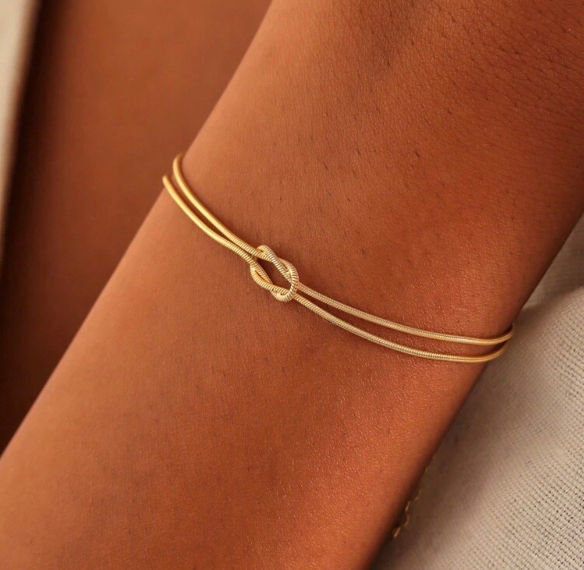 Pulsera de oro con eslabón infinito, con un nudo en el medio. Perfecta para el día a día 14
